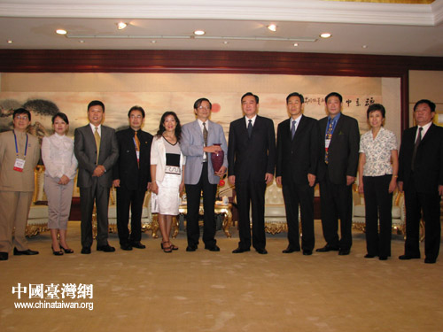 河南省委副書記陳全國(guó)(右五)會(huì)見臺(tái)灣經(jīng)貿(mào)交流訪豫團(tuán)合影 (來源:河南省臺(tái)辦)