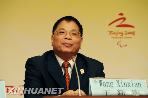 9月4日上午,北京殘奧會中國體育代表團在北京殘奧會主新聞中心召開媒體見面會。圖為北京殘奧會中國體育代表團團長王新憲在新聞發布會現場。(新華網 倪宏攝)