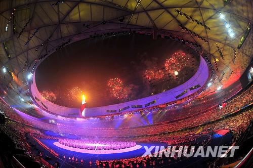 9月6日,北京2008年殘奧會(huì)開(kāi)幕式在國(guó)家體育場(chǎng)“鳥(niǎo)巢”舉行。這是主火炬被點(diǎn)燃后的焰火表演。新華社記者廖宇杰攝