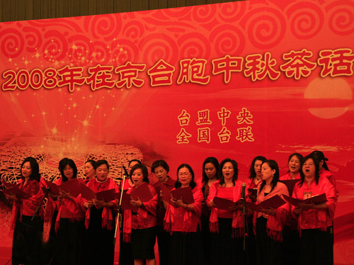 中秋佳節(jié)來臨前夕,由臺盟中央、全國臺聯(lián)主辦的“2008在京臺胞中秋茶話會”在全國政協(xié)禮堂舉行。圖為聯(lián)誼晚會現(xiàn)場。(攝影:董潔)