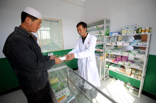 村民在寧夏海原縣西安鎮白吉村村衛生室取藥(9月5日攝)。 2005年,寧夏全面啟動農村醫療改革。短短幾年,隨著新型農村合作醫療覆蓋所有縣市,村衛生室升級,“零利潤”藥品進鄉村,村醫領“月薪”等一系列民生措施的實施,寧夏農民迎來醫療保障的新時代。 新華社記者 劉泉龍 攝