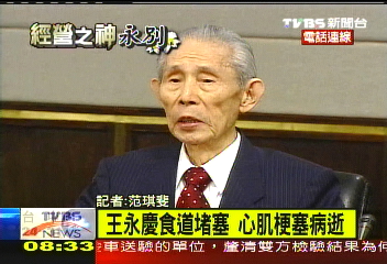 據臺媒報道,王永慶因為擔憂美國金融風暴對臺灣的沖擊,在11日帶著夫人和子女前往美國視察旗下的生產線和房產,沒想到在美國東部時間15日早上被送進新澤西一家醫院,9點38分因心肺功能衰竭而過世,享壽92歲。
