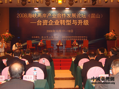 中國臺灣網(wǎng)10月17日昆山消息 “2008海峽兩岸產(chǎn)業(yè)合作與發(fā)展論壇”今日上午在昆山開幕,活動由昆山市政府、國家科技部海峽兩岸科技交流中心、清華大學(xué)臺灣研究所和昆山臺資企業(yè)協(xié)會共同舉辦。來自兩岸約300位知名企業(yè)家和專家學(xué)者等各界人士在本次論壇期間,將結(jié)合自身實(shí)踐和研究成果,共商臺資企業(yè)轉(zhuǎn)型升級與產(chǎn)業(yè)轉(zhuǎn)移。