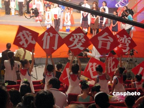 10月18日晚,上海首次舉辦“我愛臺灣”中小學生歌舞大賽。比賽由上海市臺辦、浦江之聲廣播電臺等聯合舉辦。在大賽現場,由兩岸小演員組成的上海七色花小學參賽隊自發打出“我們愛臺灣”的標語。據了解,上海有超過六千名注冊在讀的臺灣籍學子,他們中的一部分也參加了這一歌舞大賽。 中新社發 許曉青 攝