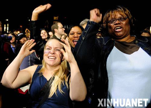 11月4日,美國民主黨總統候選人奧巴馬的支持者在芝加哥慶祝奧巴馬在總統選舉中獲勝。新華社記者張巖攝