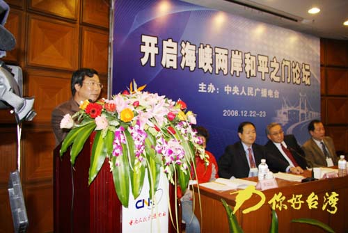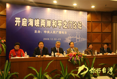 “開啟海峽兩岸和平之門”論壇是在改革開放走過30年、兩岸關系迎來“三通”新時代的大背景下召開的。中央人民廣播電臺副臺長趙鐵騎在開幕式上致詞時表示,和平發展已成為兩岸關系的主旋律,是人心所向、大勢所趨;兩岸從隔絕走到接觸、從敵對走向協商,在互通中彼此的了解正在增多,理解正在加深,因而感情也將更加密切,利益更加融合;隨著兩岸直接“三通”的基本實現,海峽兩岸將迎來大交流、大合作、大發展的新階段。