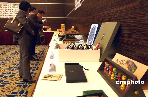 1月5日,臺灣觀光特產協會為首次選拔的“臺灣一百大觀光特產”頒獎,希望通過整合資源提高競爭力,迅速打入大陸及海外市場。臺北縣農會文山包種茶贏得金獎,隨電影《海角七號》熱賣的屏東蜻蜓雅筑琉璃珠獲銀獎,宜蘭餅藏金禮盒獲得銅獎。圖為部分獲獎產品。 中新社發 路梅 攝