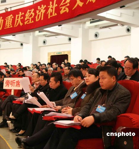 1月7日,中國人民政治協商會議重慶市第三屆委員會第二次會議在重慶市人民大禮堂開幕。10名在渝臺商代表首次受邀旁聽會議開幕會、大會發言和閉幕會。圖為開幕會現場旁聽席上的臺商代表。 中新社發 杜遠 攝