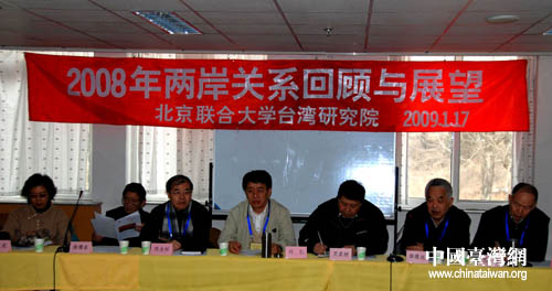 中國臺灣網1月19日北京消息 北京聯合大學臺灣研究院日前召開“2008年兩岸關系回顧與展望研討會”,知名臺灣問題專家劉紅、徐博東、黃嘉樹、郭震遠、孫升亮、李延、周志懷等共聚一堂,回顧了2008年兩岸關系發展歷程,并對今后兩岸關系的發展趨勢進行了展望。