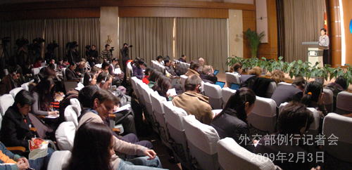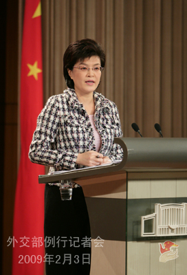 2009年2月3日,外交部發言人姜瑜舉行例行記者會,就中美關系、中歐關系、朝鮮半島局勢等回答了記者提問。