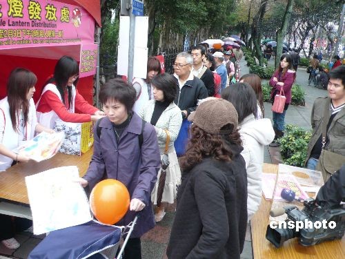 2月6日,元宵節(jié)將至,臺(tái)北市向市民免費(fèi)發(fā)放元宵節(jié)小提燈。市民只要捐兩張發(fā)票,就可獲得一組牛年小提燈,民眾踴躍領(lǐng)取,排隊(duì)長達(dá)數(shù)百米。 中新社發(fā) 路梅 攝
