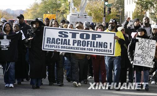 2月26日,中國國務院新聞辦公室發表《2008年美國的人權紀錄》,以回應美國國務院25日發表的《2008年國別人權報告》對包括中國在內的世界190多個國家和地區的人權狀況的指責。這是2007年11月16日,美國黑人民眾在首都華盛頓街頭參加反對種族歧視的游行。在美國,種族歧視滲透到社會生活的各個方面。新華社發