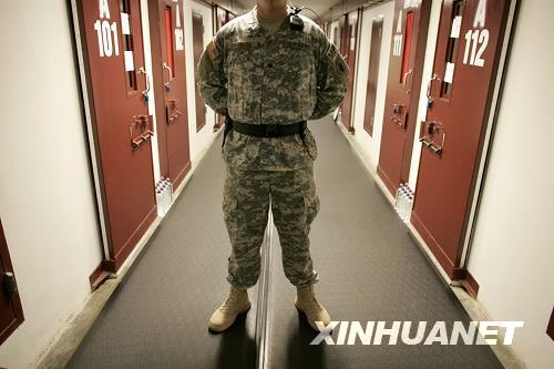 這是2007年9月4日,在古巴關塔那摩灣美國海軍基地監獄(關塔那摩監獄),一名美國士兵在牢房的走廊里警戒。在美國,囚犯比例再創新高,囚犯的基本權利得不到保障。新華社發