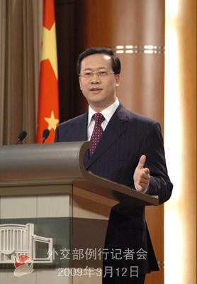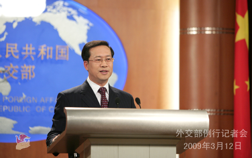 2009年3月12日,外交部發言人馬朝旭舉行例行記者會,就楊潔篪外長訪美、美國會眾議院通過涉藏議案、菲律賓總統簽署領;法案等回答了記者提問。