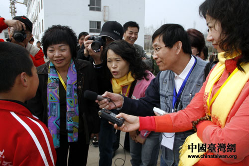 聯(lián)合采訪河南的兩岸媒體在嵩山少林寺參訪,巧遇在此地武術(shù)學(xué)校習(xí)武的臺(tái)灣小朋友。(鐘寶華 攝)