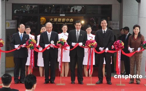 馬英九在剪彩儀式上發表演講。來源:中新社