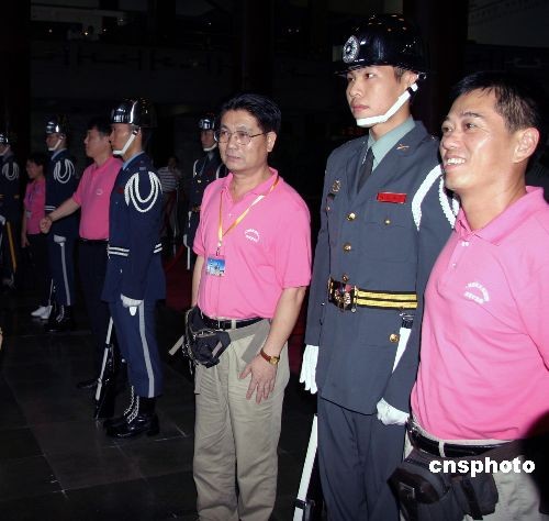 大陸居民赴臺(tái)旅游及兩岸周末包機(jī)7月4日成行。七百多人的首發(fā)團(tuán)抵臺(tái)后,多個(gè)團(tuán)甫抵臺(tái)北,首站即參訪臺(tái)北孫逸仙紀(jì)念館。為迎接大陸觀光客來臺(tái),紀(jì)念館方面破例允許大陸觀光客可以近身和館內(nèi)衛(wèi)兵合影。 中新社發(fā) 徐長安 攝