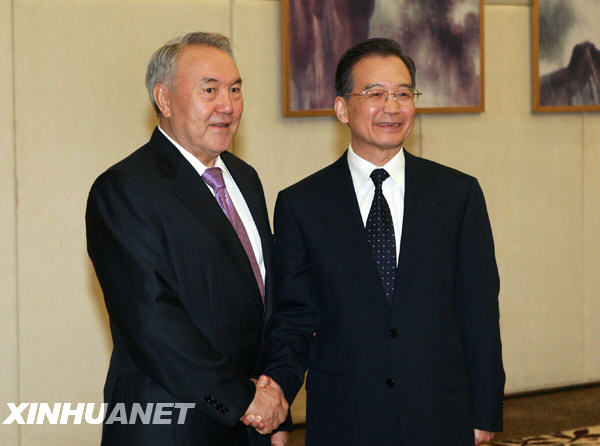 溫家寶在會見納扎爾巴耶夫時表示,中哈戰略伙伴關系快速發展,務實合作成果豐碩。面對國際金融危機的嚴重沖擊,兩國充分發揮各自優勢,加強合作,給雙方帶來了實實在在的利益。雙方要重點做好四方面工作:一是采取積極措施,保持雙邊貿易增長勢頭;二是加緊落實已達成的協議,重點推進能源、資源領域的合作;三是加強金融和投資合作,確保大項目順利實施;四是推動基礎設施等非資源領域合作,使兩國貿易關系更加富有活力。