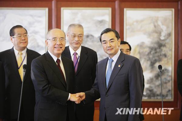 當日,中國國民黨主席吳伯雄率領中國國民黨大陸訪問團乘機抵達北京,開始訪問大陸行程。中共中央臺辦主任王毅到機場迎接。新華社記者 邢廣利 攝