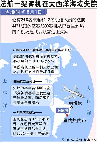 圖表:法航一架客機在大西洋海域失蹤 新華社發