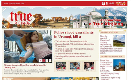 由英文環球網( www.globaltimes.cn)主辦的真實新疆網( www.truexinjiang.com)于2009年7月13日正式開通,這是目前中國國內首家全面介紹新疆的英文網站。
