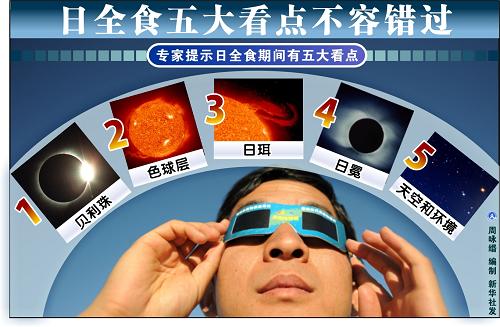 五百春秋日輪變幻,觀今夏獨秀。王思潮介紹,第一大特點是最精彩的全食持續時間很長,我國境內日食中心線上各點的全食時間在4到6分鐘之間。其中浙江省嵊泗縣的全食時間最長,可達6分01秒。這在中國境內是五百年一遇。