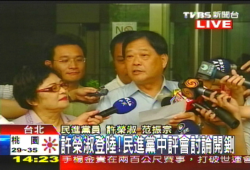 中國臺灣網7月23日消息 據臺灣TVBS電視臺報道,民進黨今天中午召開中評會,就前民進黨中常委許榮淑和范振宗到大陸參加兩岸經貿文化論壇一事,分別對2人作出停權3年處分。