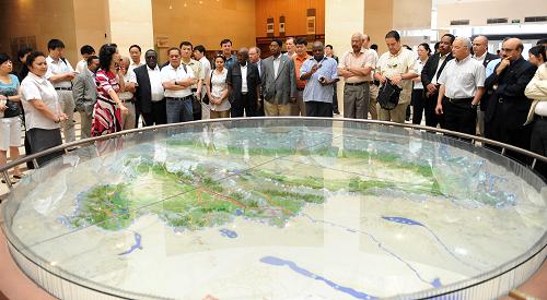 8月11日,講解員在向外國駐華使團代表介紹新疆基本情況。新華社記者 沙達提 攝