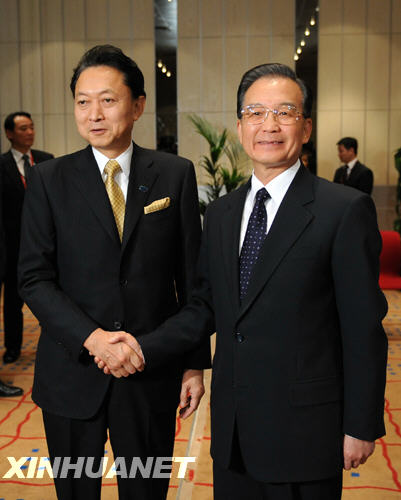 12月17日,中國國務院總理溫家寶在哥本哈根會見日本首相鳩山由紀夫。新華社記者劉建生攝