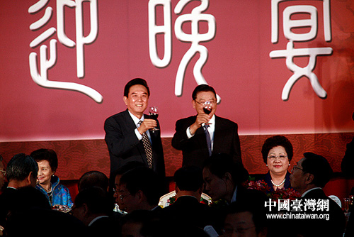 陳云林與江丙坤共同舉杯,預(yù)祝本次會(huì)談取得圓滿成功(中國(guó)臺(tái)灣網(wǎng) 李徽 攝)