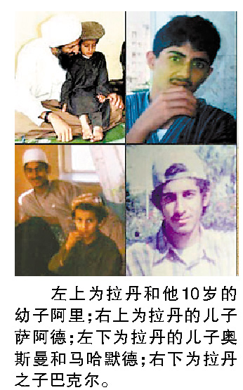 拉丹家族人丁興旺,他有50多個同父異母的兄弟姐妹。拉丹的父親是沙特阿拉伯的建筑業(yè)大亨,很多當?shù)氐拇笮晚椖慷际抢侠な窒碌募瘓F負責承建的。目前,藏在伊朗的家人過著和普通人一樣的生活。不過,伊朗政府始終極力否認拉丹本人及其家人藏身該國的說法。