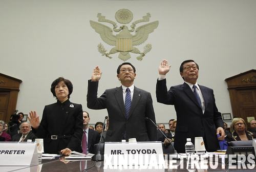 2月24日,日本豐田汽車公司總裁豐田章男(中)在華盛頓舉行的美國眾議院監(jiān)督和政府改革委員會聽證會上宣誓。豐田章男當日在美國國會聽證會上再次為豐田汽車安全問題道歉,并且承諾豐田將全面提升汽車安全以贏得消費者信任。新華社/路透