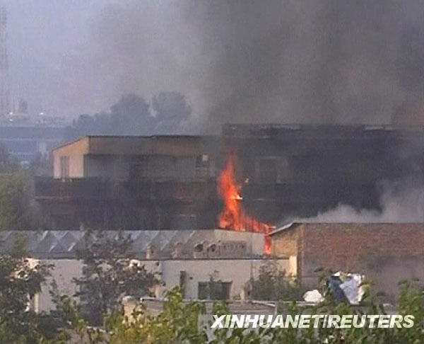這張10月28日的視頻截圖顯示的是阿富汗首都喀布爾市中心聯合國一家招待所遇襲后燃起熊熊大火。阿富汗安全部隊28日清晨與潛入首都喀布爾市中心的恐怖分子展開激烈槍戰,造成至少6名聯合國工作人員死亡。 新華社/路透