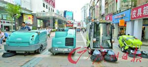 4款新引進的多功能環(huán)衛(wèi)清潔設備昨日在北京路亮相。記者陳安攝