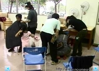 美發(fā)師當(dāng)義工,災(zāi)民爭相剪發(fā)。