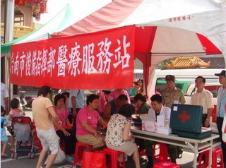 中新網8月19日電 據臺灣“今日新聞”報道,臺南市后備指揮部繼日前于安南區設置醫療服務站后,8月19至22日連續4天,結合民間醫療資源前往高雄縣甲仙鄉,提供災民最立即、最貼心的醫療支持。
