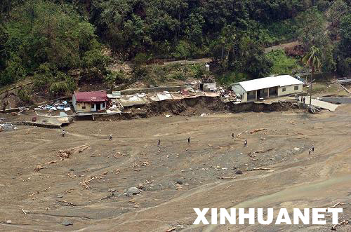 臺(tái)風(fēng)“莫拉克”重創(chuàng)南臺(tái)灣,山川變色,昔日迷人的峻嶺峭壁、溪流瀑布瞬間就成為駭人的“魔鬼”。位于高雄縣北部的那瑪夏鄉(xiāng)大量房屋與農(nóng)田被泥石流沖毀,對(duì)外交通阻斷。新華社發(fā)