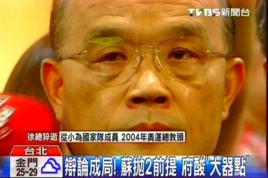 記者:“拒絕4報1社主辦,也不準(媒體)現場詢問?”民進黨主席蘇貞昌:“我們很高興馬英九答應說要辯論,既然要辯論就要符合‘國人’期待。”