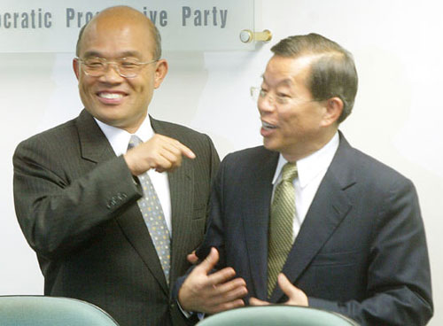 謝長廷:柯文哲是否入黨,要考慮綠營是不是能贏。(左為蘇貞昌,右為謝長廷,網(wǎng)絡圖)