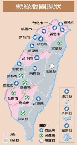 臺灣地區藍綠執政現狀圖。(圖片來自臺媒)