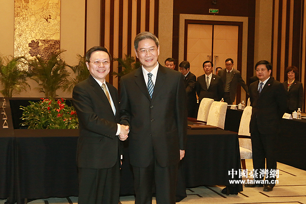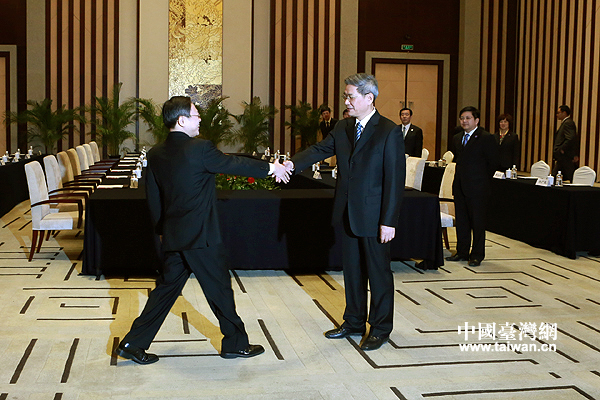 國臺辦主任張志軍2月11日下午在南京與臺灣方面陸委會負(fù)責(zé)人王郁琦舉行雙方兩岸事務(wù)主管部門負(fù)責(zé)人首次正式會面。(中國臺灣網(wǎng) 田云鵬 攝)