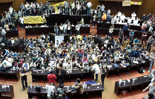 抗議學生繼續“霸占”臺灣立法機構議事堂。(圖片來源:臺灣今日新聞網)