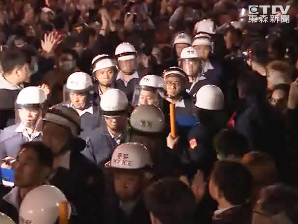 臺灣部分學生23日晚攻占臺灣“行政院”,警方實施強制驅離。(圖片取自臺媒)