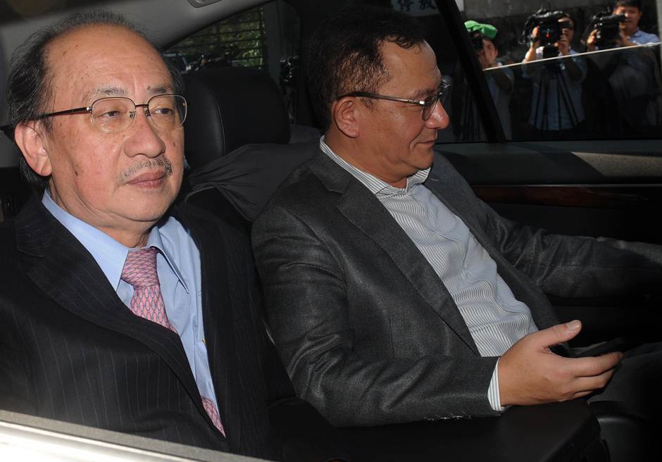 民進黨“立法院”黨團總召柯建銘(左)搭車進入王金平宅院。臺灣“中時即時”圖