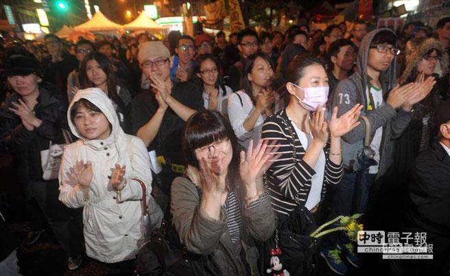 占據“立法院”議場的學生7日宣布即將在10日退場,在場外同步收看轉播的學生與民眾報以熱烈的掌聲表達支持之意。(圖片來自臺灣:《中時電子報》)