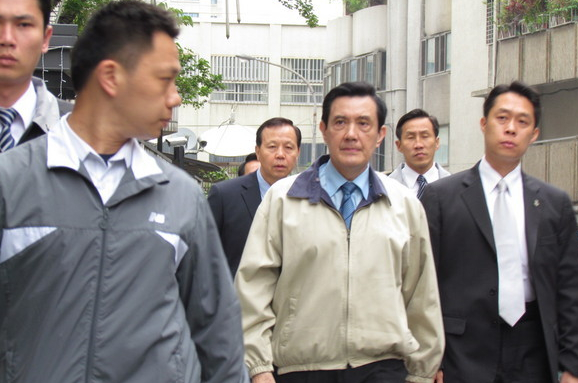 馬英九23日上午9點3分,抵達林義雄義光教會禁食現場。(臺媒圖)