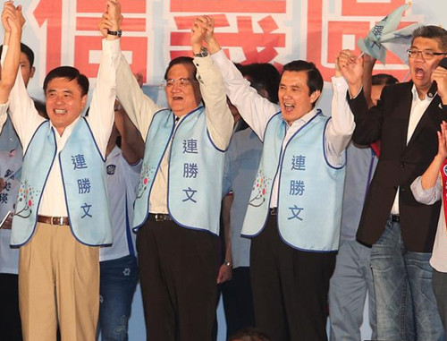 據臺灣“中央社”報道,選舉倒數18天,國民黨主席馬英九及榮譽主席連戰11日晚同臺力挺連勝文,馬英九說,此時最需要團結,盼大家捐棄成見,以勝選為目標。