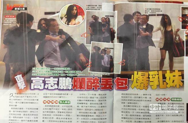 高“委員”跟誰吃飯?從扶他的兩名男性看不出端倪,倒是一路從后方緊抱著他、穿著爆乳洋裝的短發辣妹,非常吸睛、令人屏息。報道稱,該女子穿著短裙低胸洋裝,從后方環抱高志鵬,將他扶進驕車,自己也一屁股直接坐進高的私家車后座,令記者期待,莫非高委員要“打包”辣妹回府?