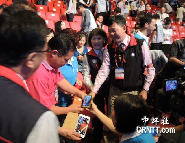 黨代表、中常委等爭相和洪秀柱合照,發言人徐巧芯一臺手機接著一臺照。(中評社 黃筱筠攝)