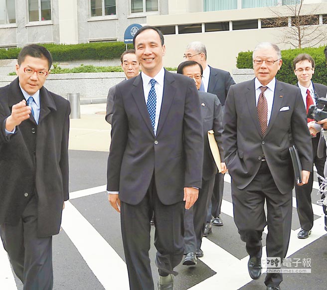 陪同朱立倫進入國務院的還有前臺灣方面“駐美代表”袁健生、前臺灣涉外部門負責人楊進添及前“國安會”副秘書長何思因,約1小時后,三人在東亞局官員陪同下,步出杜魯門大樓。